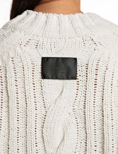 Replay γυναικεία πλεχτή μπλούζα  V, με λογότυπο στο πίσω μέρος