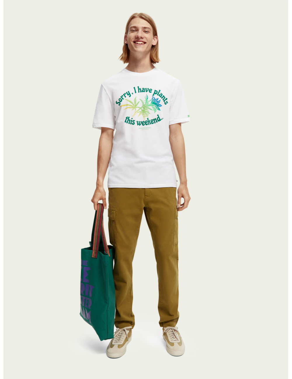 Scotch & Soda ανδρικό T-shirt με λαιμόκοψη, με ένα ειδικά σχεδιασμένο έργο τέχνης εμπνευσμένο από την πιο πράσινη πλευρά του Άμστερνταμ. Αυτό το στυλ είναι κατασκευασμένο από μαλακό βαμβάκι ζέρσεϊ - παρέχοντας άνεση όλη την ημέρα για κάθε μέρα.