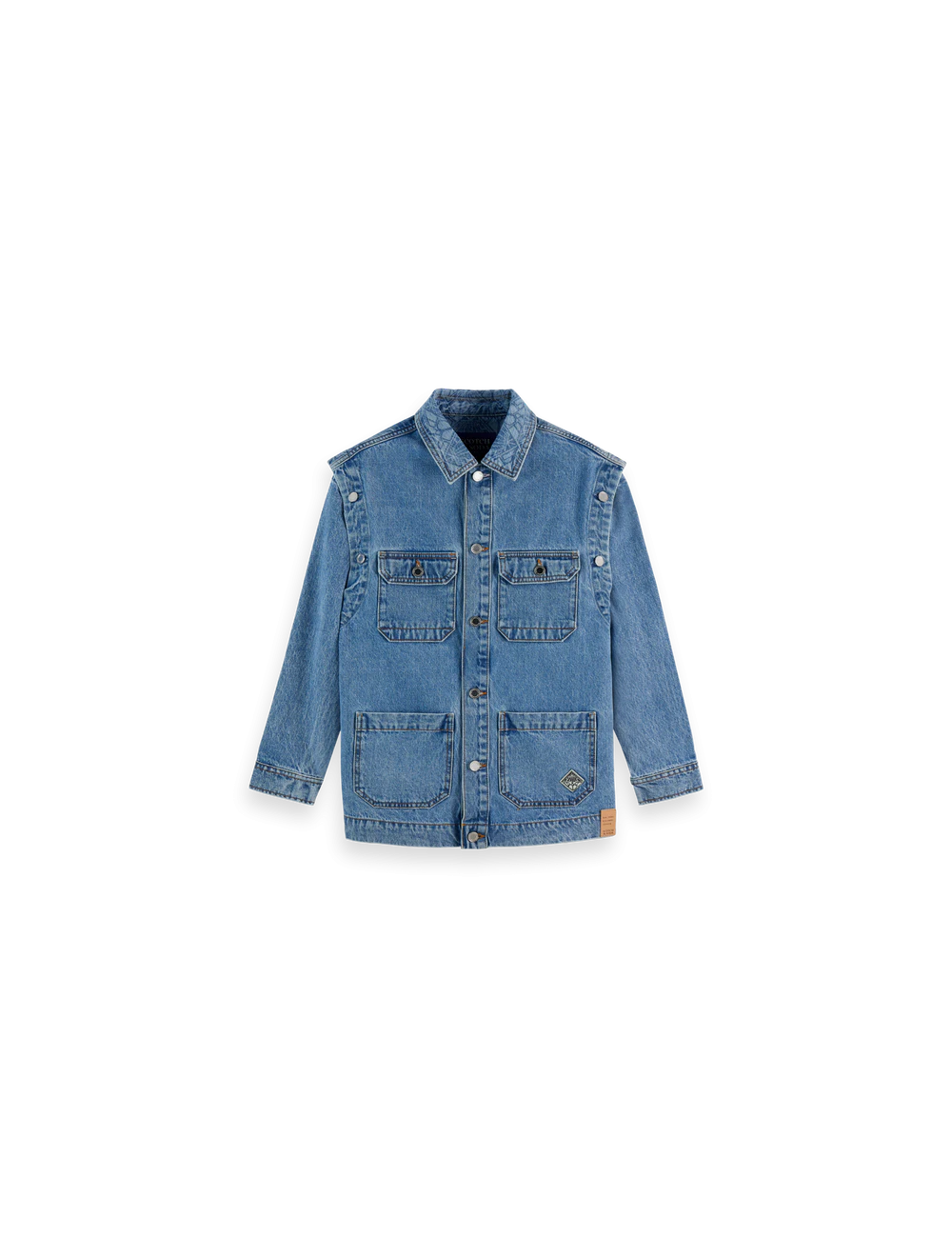 Αυτό το πλυμένο τζιν μπουφάν συνδυάζει το κλασικό στυλ με την ευελιξία, διαθέτοντας αποσπώμενα μανίκια για προσαρμόσιμη χρήση. Φτιαγμένο από απαλό ύφασμα, είναι ιδανικό για στρώσεις πάνω από οποιοδήποτε ντύσιμο, είτε προτιμάτε ένα casual είτε πιο δομημένο look.