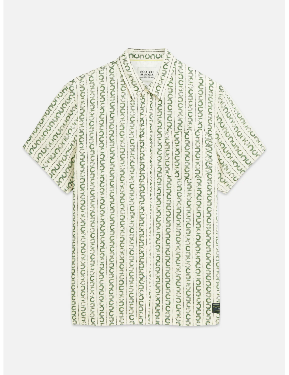 Scotch & Soda Ένα κοντομάνικο πουκάμισο από λινό με τυπωμένο σχέδιο, κανονική εφαρμογή και φρέσκια, μοντέρνα εμφάνιση.