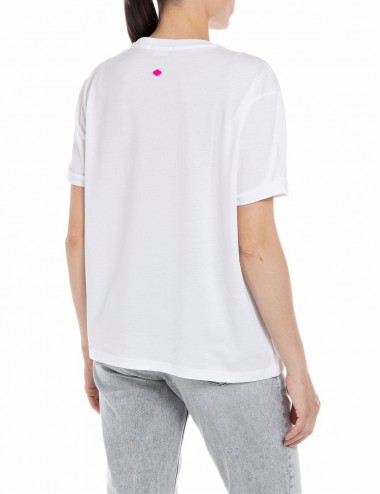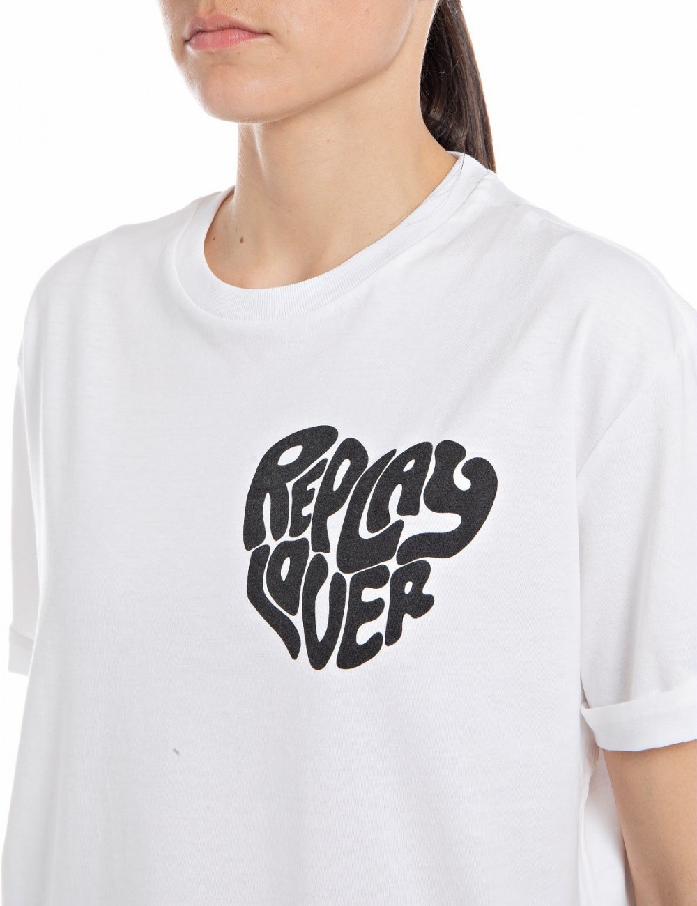 Replay γυναικείο t-shirt από βαμβάκι, με κοντό μανίκι και τύπωμα στο στήθος .