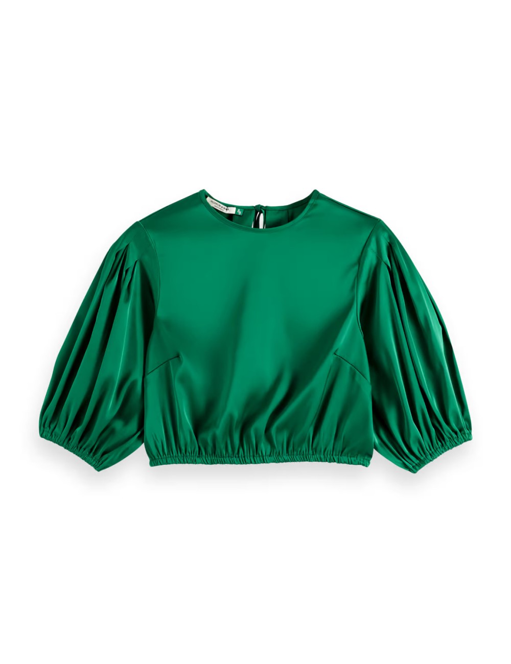 This elegant crop top features balloon sleeves and a jewel neckline, with a gathered waist that cinches in for a flattering, sophisticated silhouette. Perfect for both day and night looks.