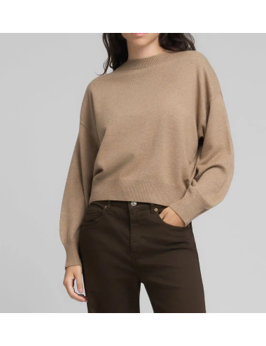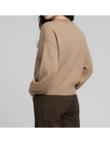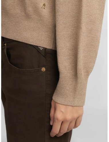 Replay women's round neck sweater in a viscose blend for a soft and comfortable feel. This style features long, puffy sleeves with dropped shoulders and ribbed knit at the neck, cuffs and hem. The design is completed with the brand's iconic R detail on the side.