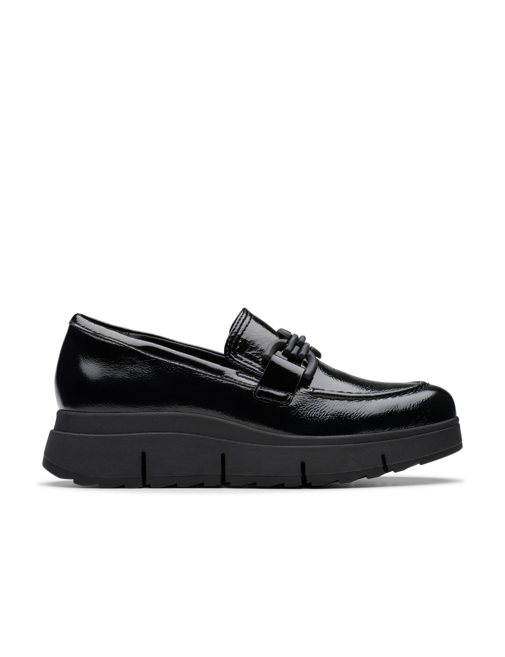 Women's loafers from the Clarks brand in black that hug the foot uniquely