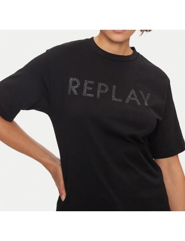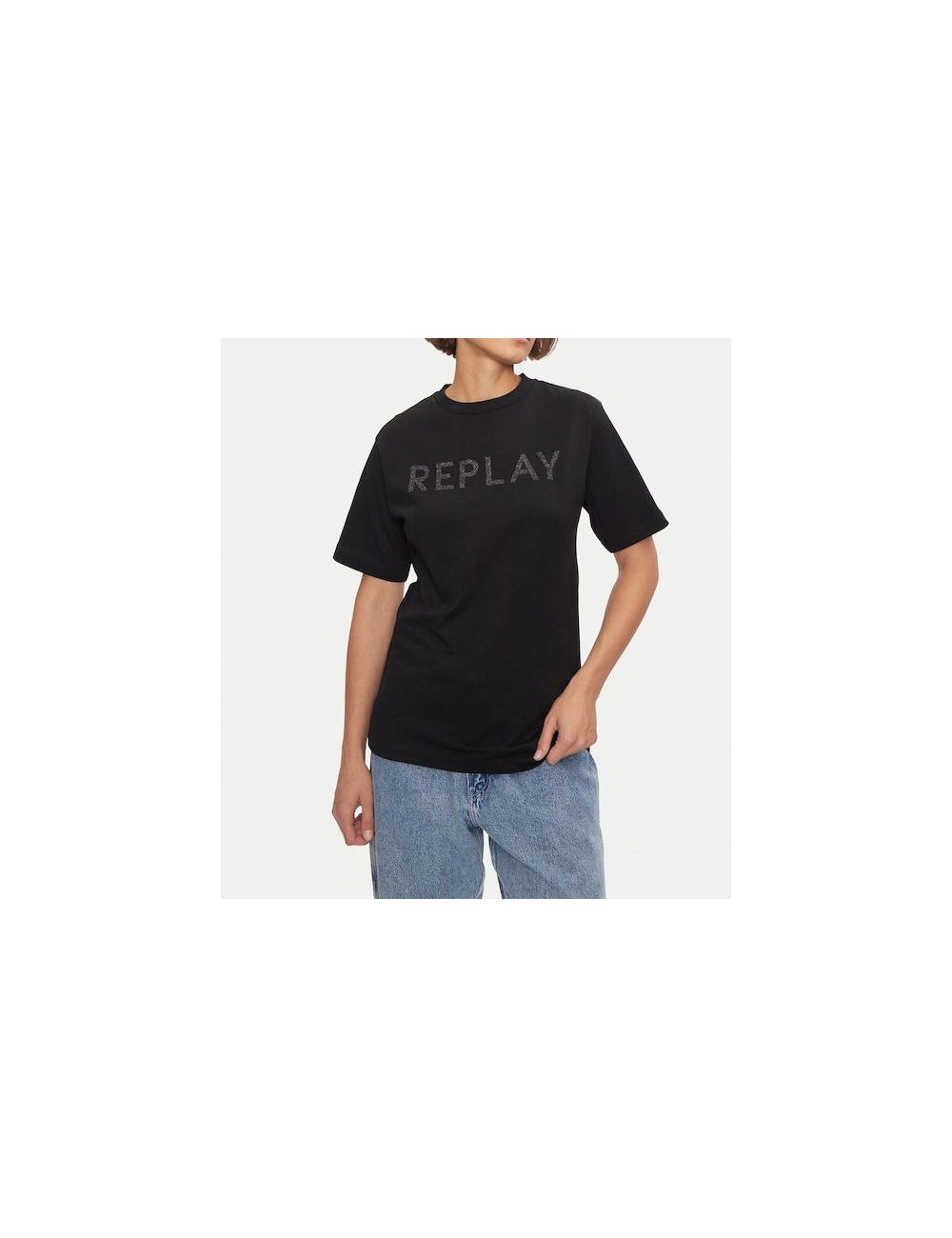 T-shirt with regular fit, with a neckline made of organic pure cotton jersey fabric, guarantee for softness and freshness. This short-sleeved tee is finished with glittering Replay lettering on the front and a logo tag on the back, a signature detail of the brand.