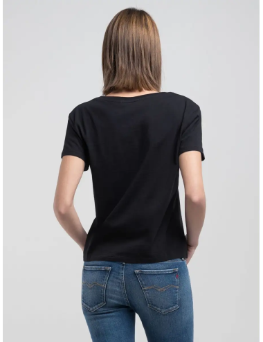 Short-sleeved T-shirt in cool cotton jersey. This V-neck style features a Replay maxi-letter print with a subtle faded, off-center effect.