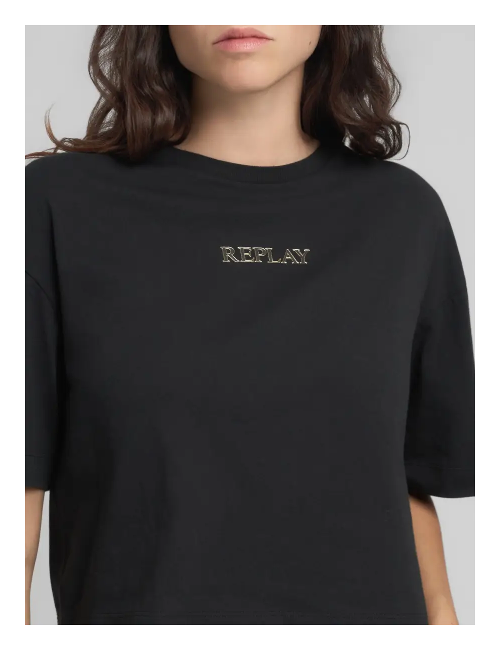 This cropped T-shirt with a crew neck and oversized fit comes in soft cotton jersey. This short-sleeved style with dropped shoulders features an embossed Replay logo at the center of the chest.