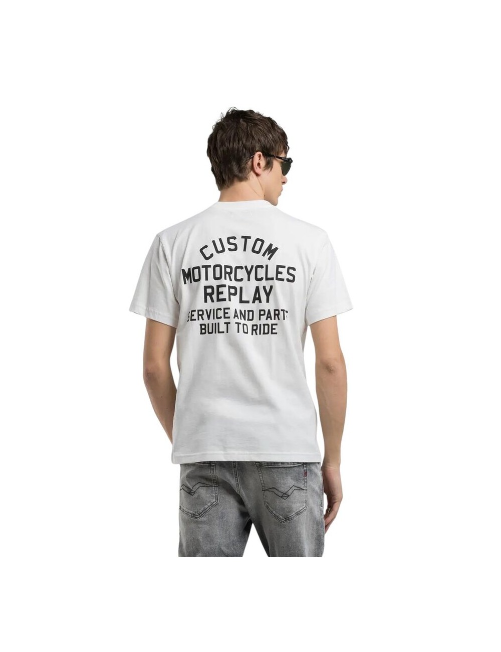 Replay short-sleeved round neck T-shirt with print on the chest and back.