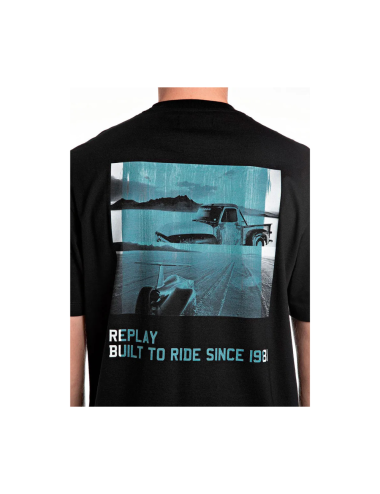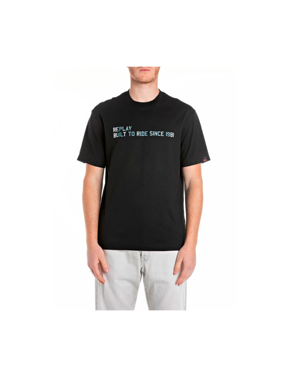 Relaxed-fit crew-neck T-shirt in soft pure cotton jersey. This piece is distinguished by a lettering print on the front, which is repeated on the back and accompanied by a photographic print. This design is complemented by the iconic label with our archival logo label on the sleeve.