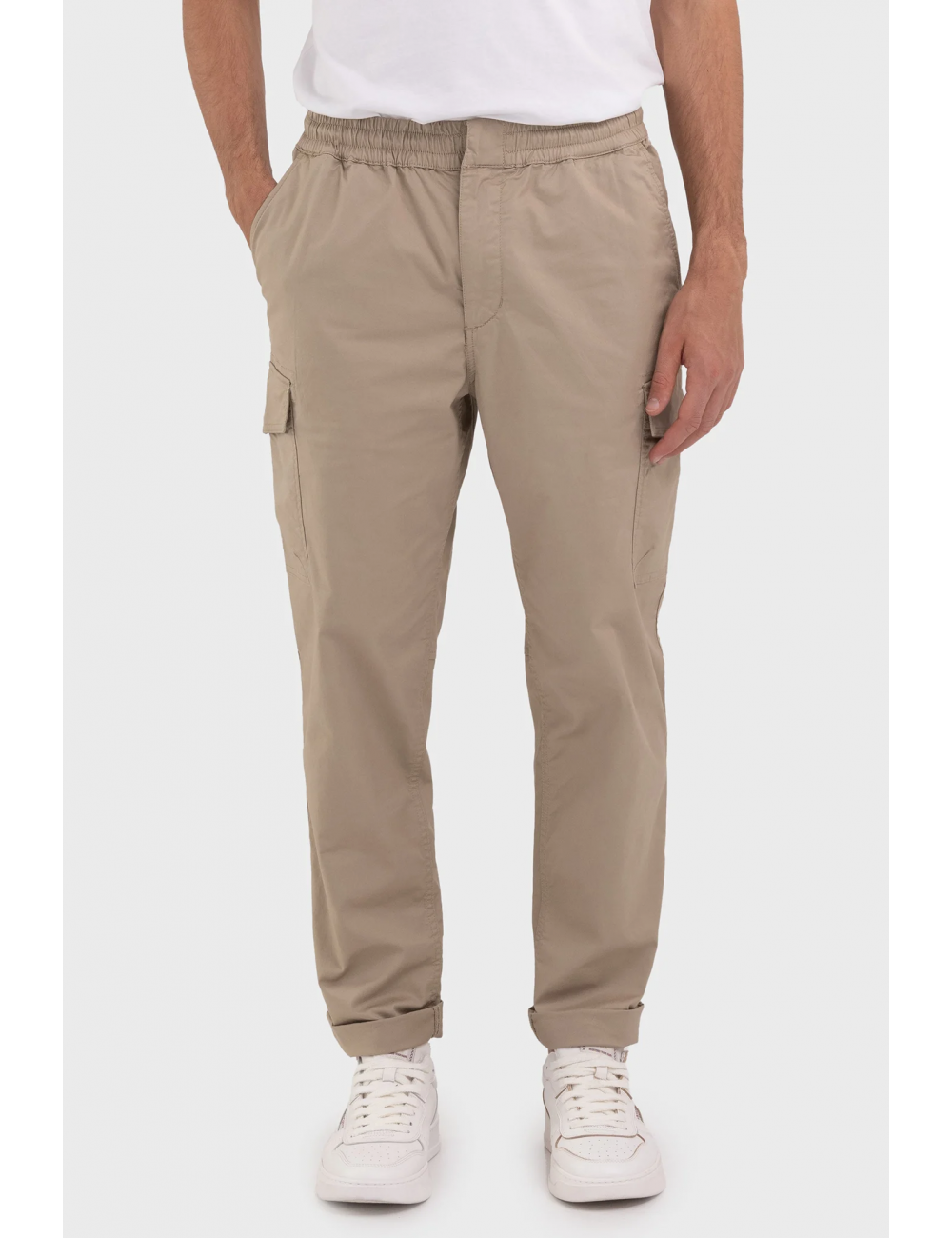 Replay cargo jogger pants made of light cotton comfortable twill. With an adjustable drawcord and comfortable leg, the garment is enhanced by front, back and side pockets. Press and zip closure